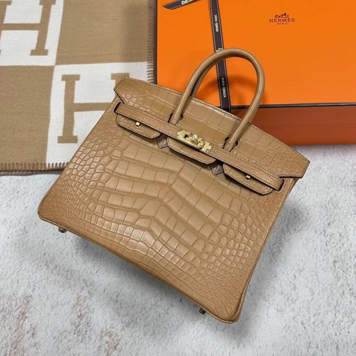 Uncle Bench Hermes Birkin matte alligator crocodile 0M Tea color Gold Hardware Ghw 25cm Full Handmade