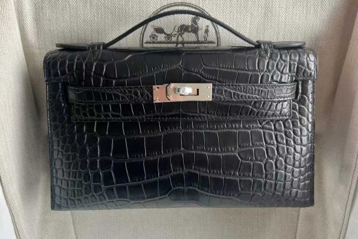 Kelly Pochette Uncle Bench Mini Kelly Pochette Matte Alligator Crocodile Ck89 Black Silver Hardware 22cm Full Handmade January 26, 2026