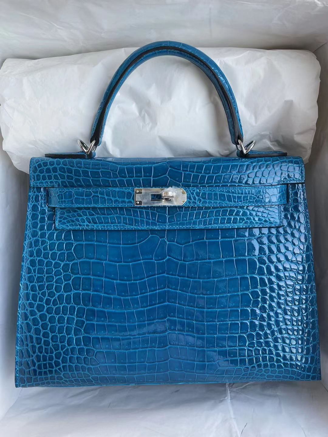 Uncle Bench Hermes Kelly 28cm shiny alligator crocodile 7w Izmir blue Silver Hardware Full Handmade January 24, 2022 Uncle Bench Factory Kelly Kelly 28CM Kelly 28cm shiny alligator crocodile 7w Izmir blue Silver Hardware Full Handmade