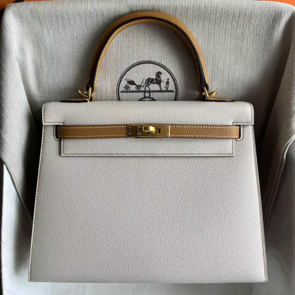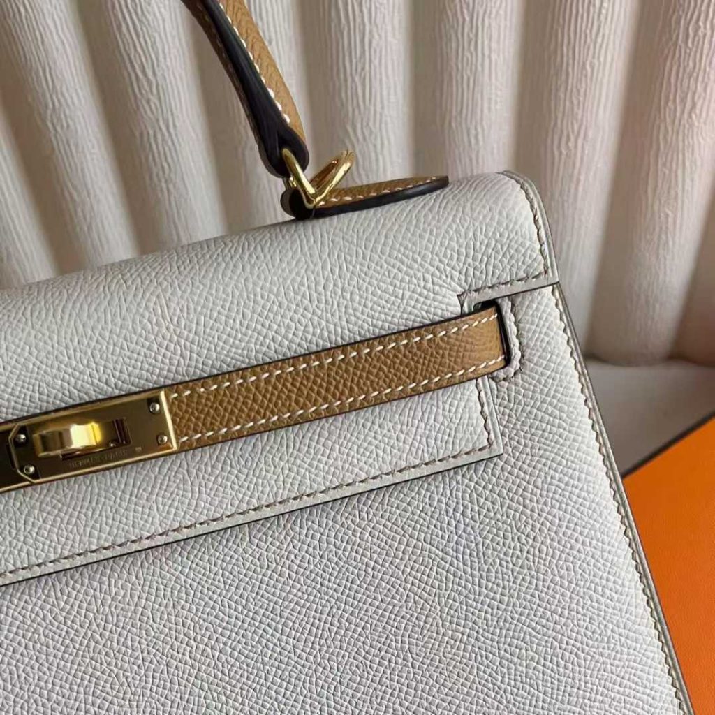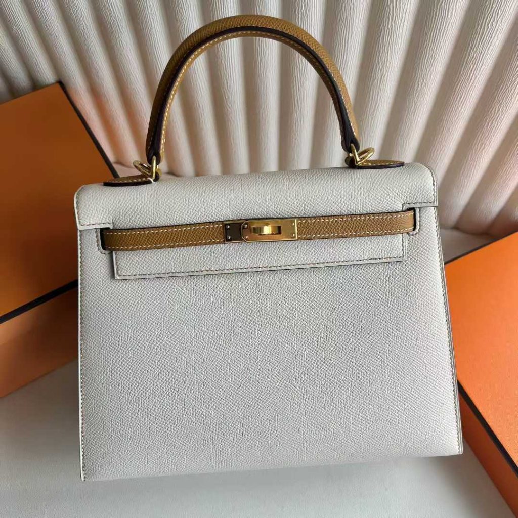Uncle Bench RepLadies Kelly Epsom Ck10 Cream White & 4B Khaki Gold Hardware 25cm Full Handmade Ghw