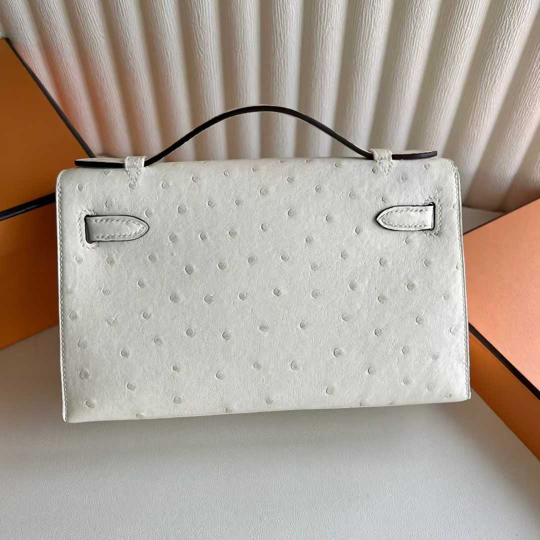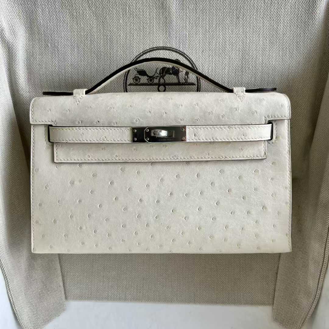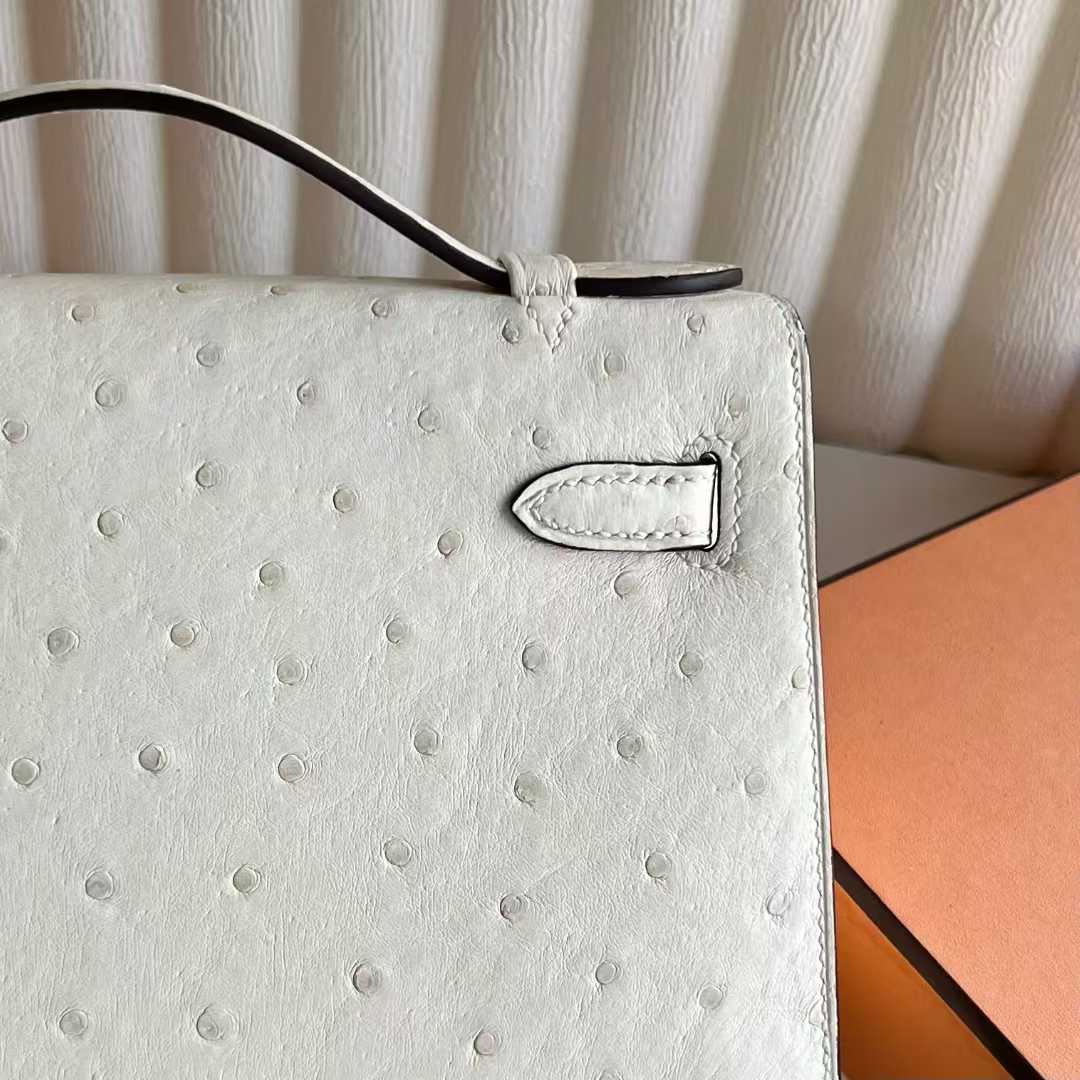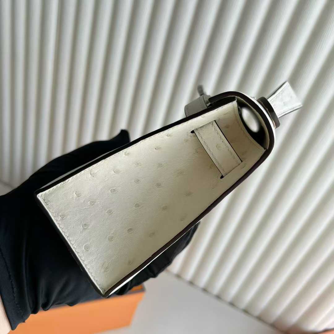 Uncle Bench Yupoo Mini Kelly Pochette Ostrich Leather I2 Cream White Silver Hardware 22cm Full Handmade Phw