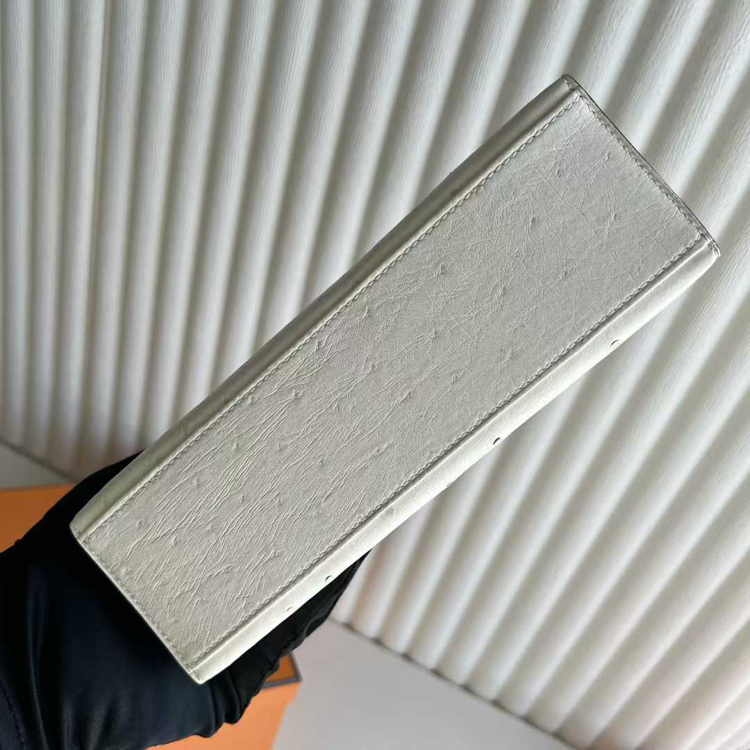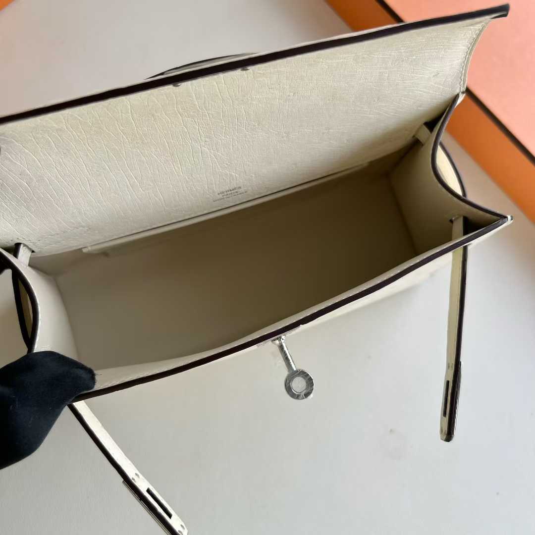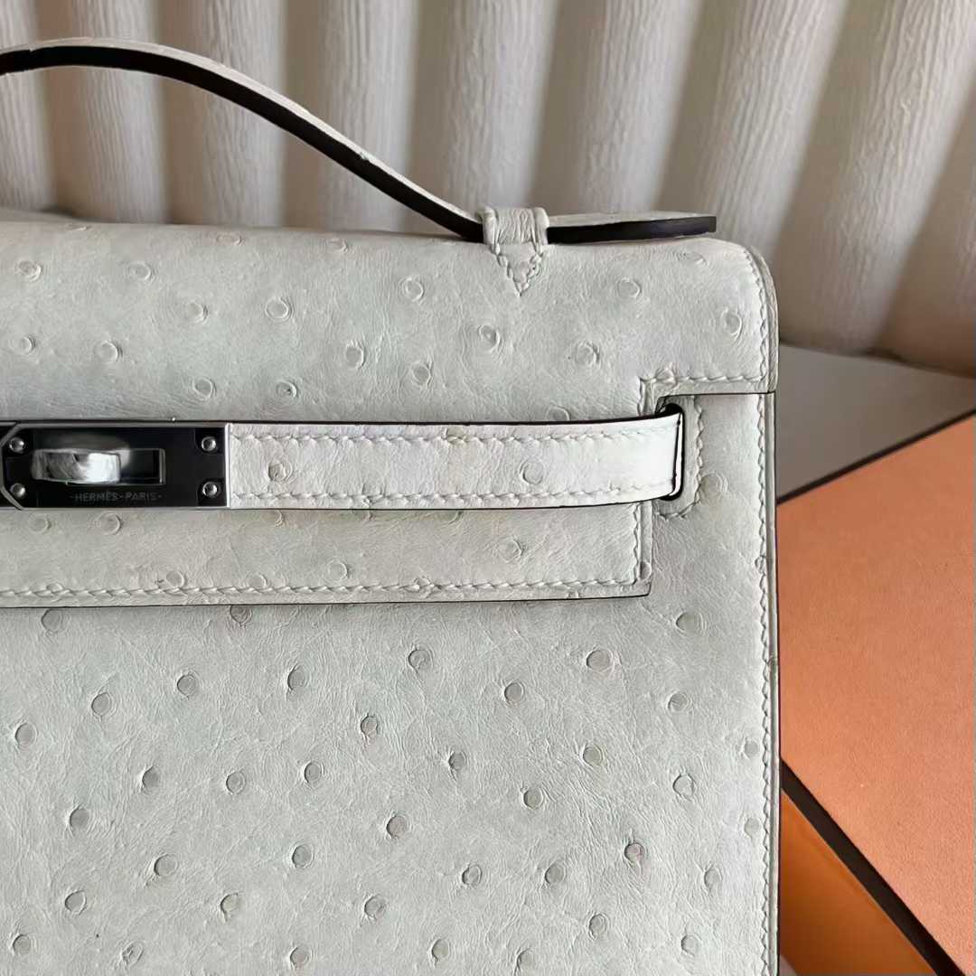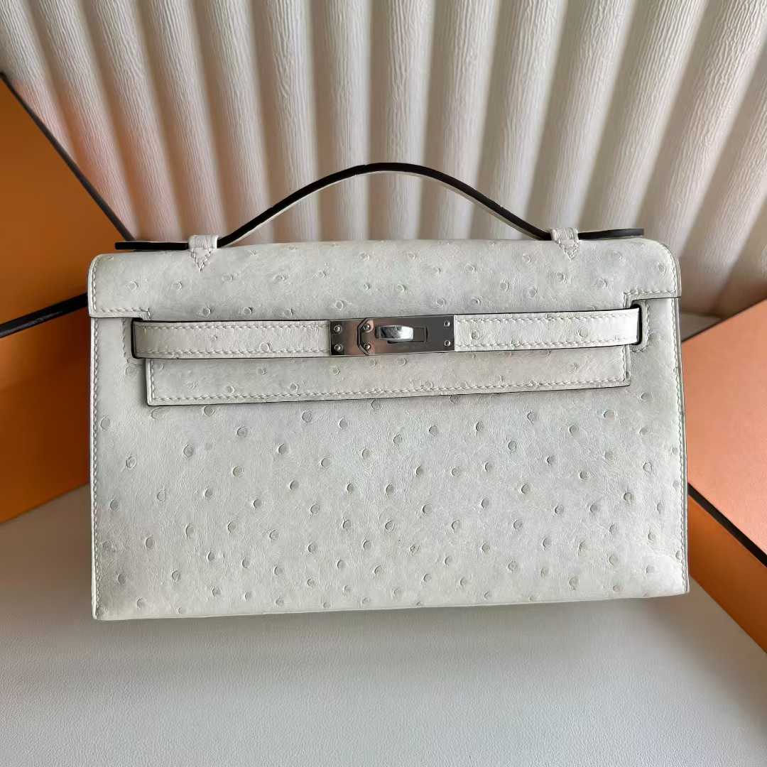 Uncle Bench Yupoo Mini Kelly Pochette Ostrich Leather I2 Cream White Silver Hardware 22cm Full Handmade Phw